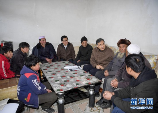 近日,中共中央政治局常委、全国政协主席汪洋在甘肃临夏回族自治州调研脱贫攻坚工作,看望慰问贫困群众和基层扶贫干部。这是1月13日,汪洋在积石山保安族东乡族撒拉族自治县刘集乡肖家村看望慰问贫困户。 新华社记者 李学仁 摄