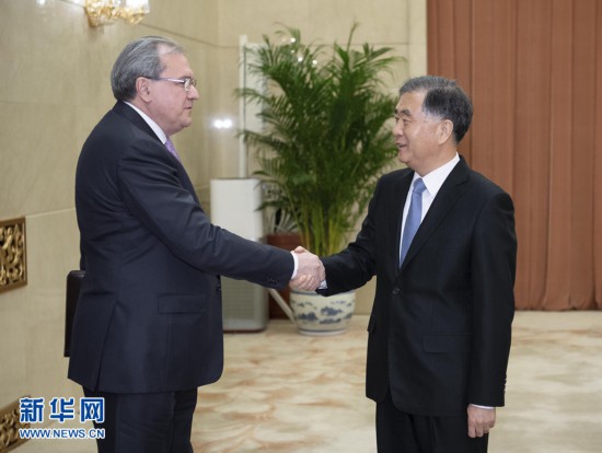全国政协主席汪洋17日在北京会见俄罗斯联邦公众院主席法捷耶夫一行。