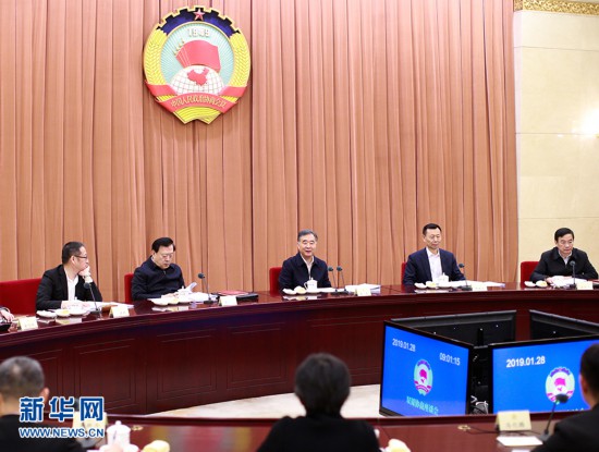 1月28日,十三届全国政协第十九次双周协商座谈会在北京召开。中共中央政治局常委、全国政协主席汪洋主持会议并讲话。 新华社记者 刘彬 摄