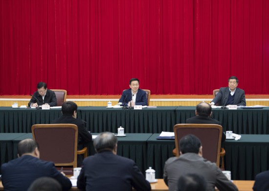 2月12日,中共中央政治局常委、国务院副总理韩正到国家发展改革委调研并主持召开座谈会。新华社记者 申宏 摄