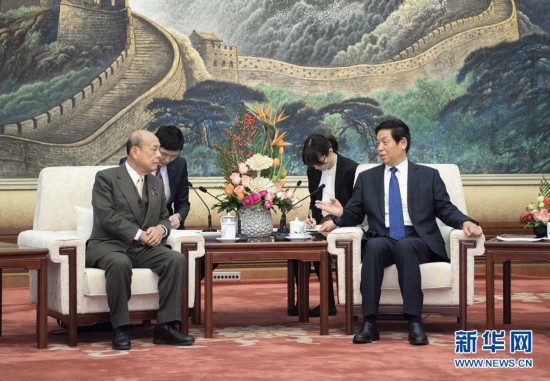 全国人大常委会委员长栗战书18日在人民大会堂会见了来华出席中国全国人大与日本国会参议院定期交流机制第八次会议的日本参议院代表团。