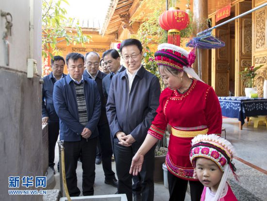 2月24日至26日,中共中央政治局常委、国务院副总理韩正在云南大理、昆明,就当前经济运行、企业生产经营、生态环境保护等进行调研。这是2月25日,韩正在大理白族自治州大理市喜洲镇美坝村村民家中询问生活污水收集情况。新华社记者王晔摄
