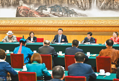 3月5日,中共中央总书记、国家主席、中央军委主席习近平参加十三届全国人大二次会议内蒙古代表团的审议。